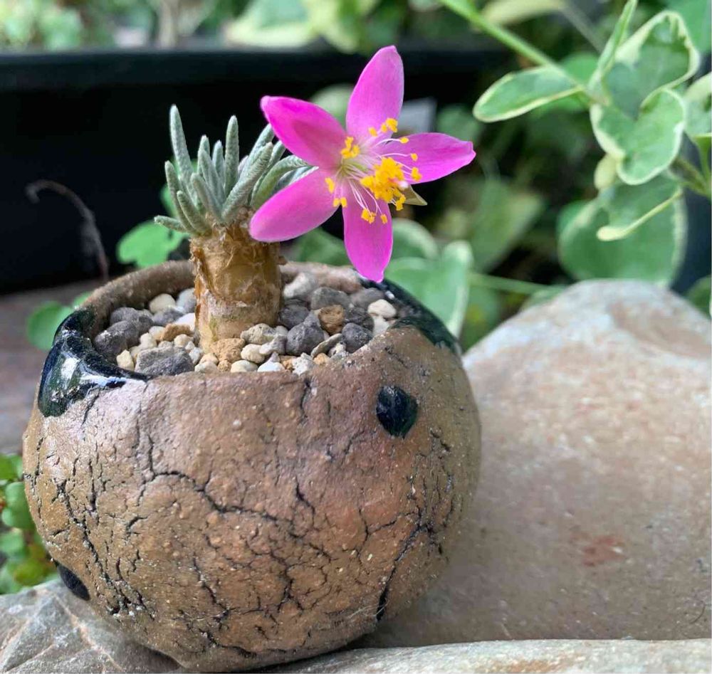 鉢の色とピンクの🌸がとても似合う😎✌️
