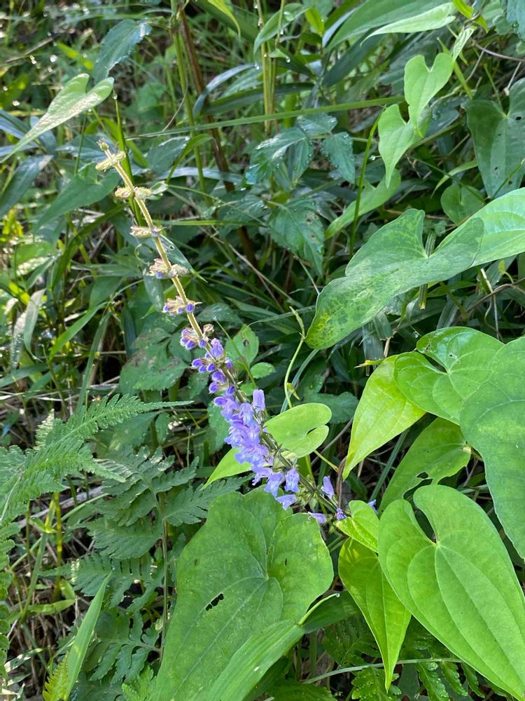 ヤマユリの自生地。足元に咲いていました。シソ科の花です。たぶん。