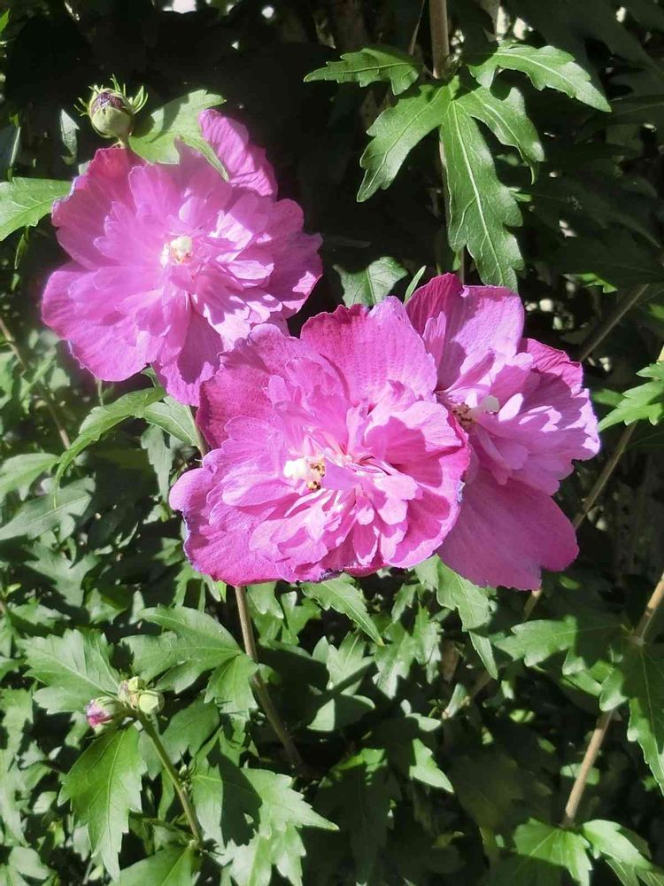 ご近所の玄関先に咲いていた八重のムクゲです。