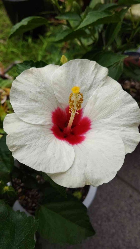 今日のオリンピック開会式にあわせるように日の丸みたいなハイビスカスが咲きました🌺