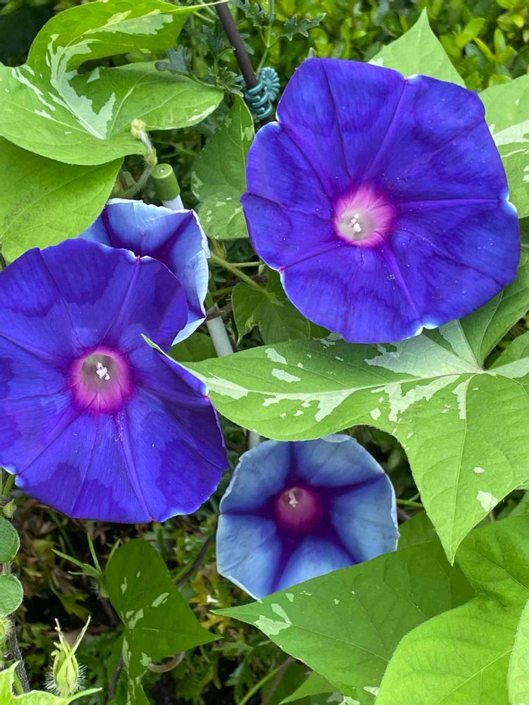 昨年の中庭に咲いた朝顔の種ですが、どの朝顔わからずに植えたもの。