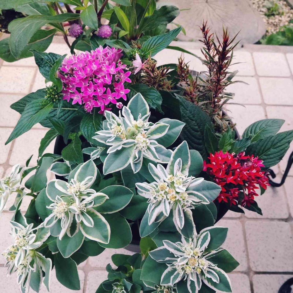 ハツユキソウ、千日紅、ペンタス、後ろの細