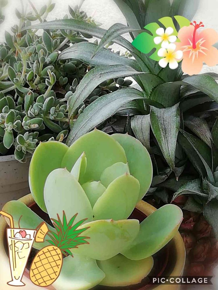 大きな葉の先が尖りコロンとしていて可愛いね~💚(ˊ˘ˋ*)♡🍑