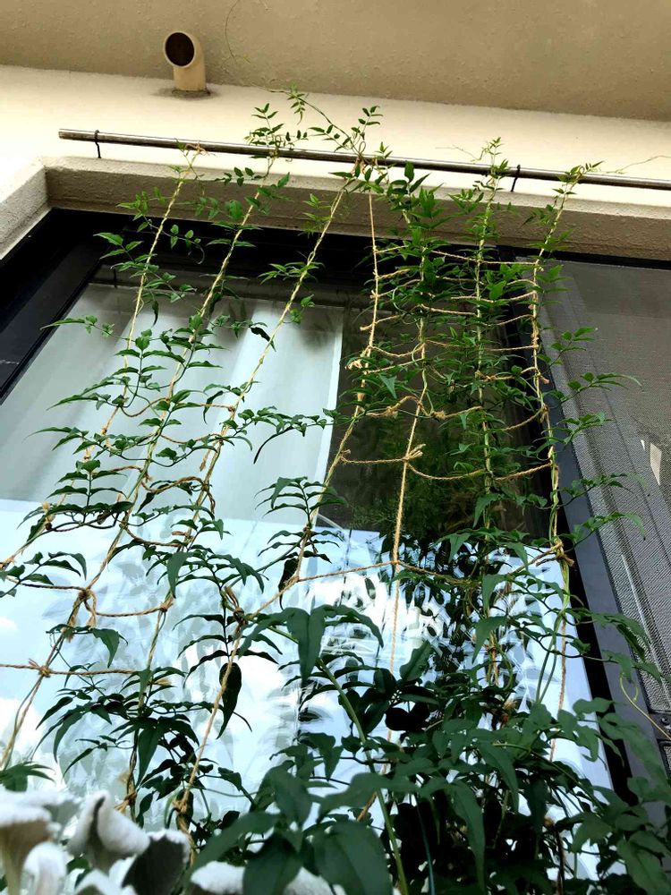 ハゴロモジャスミンを誘引していましたがあっという間に上まで届いてしまいました😊
