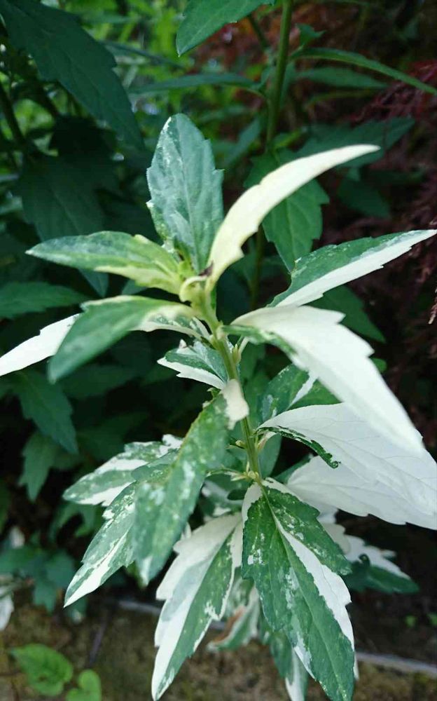 この斑入りのヨメナは 3年目で めちゃめちゃ増えましたが普通の緑の葉っぱ🌿も多いですが 白の葉っぱ一色の茎もありますよ😃…