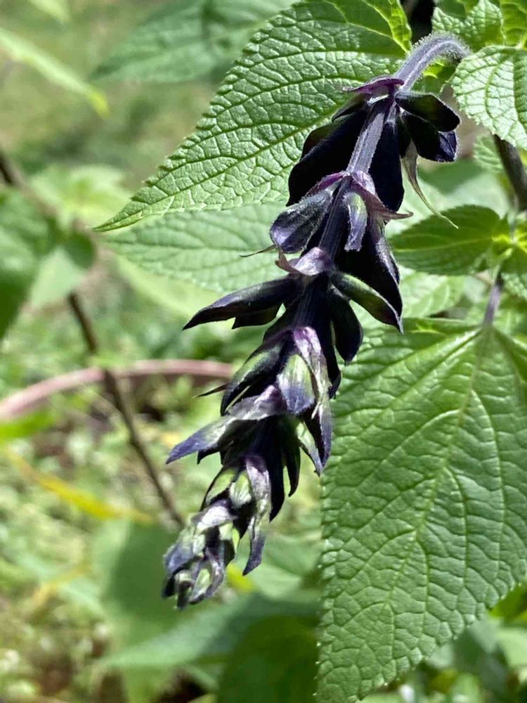 丈ばかりぐんぐん伸びていたサルビアガラニチカにやっと蕾がつきました🎶