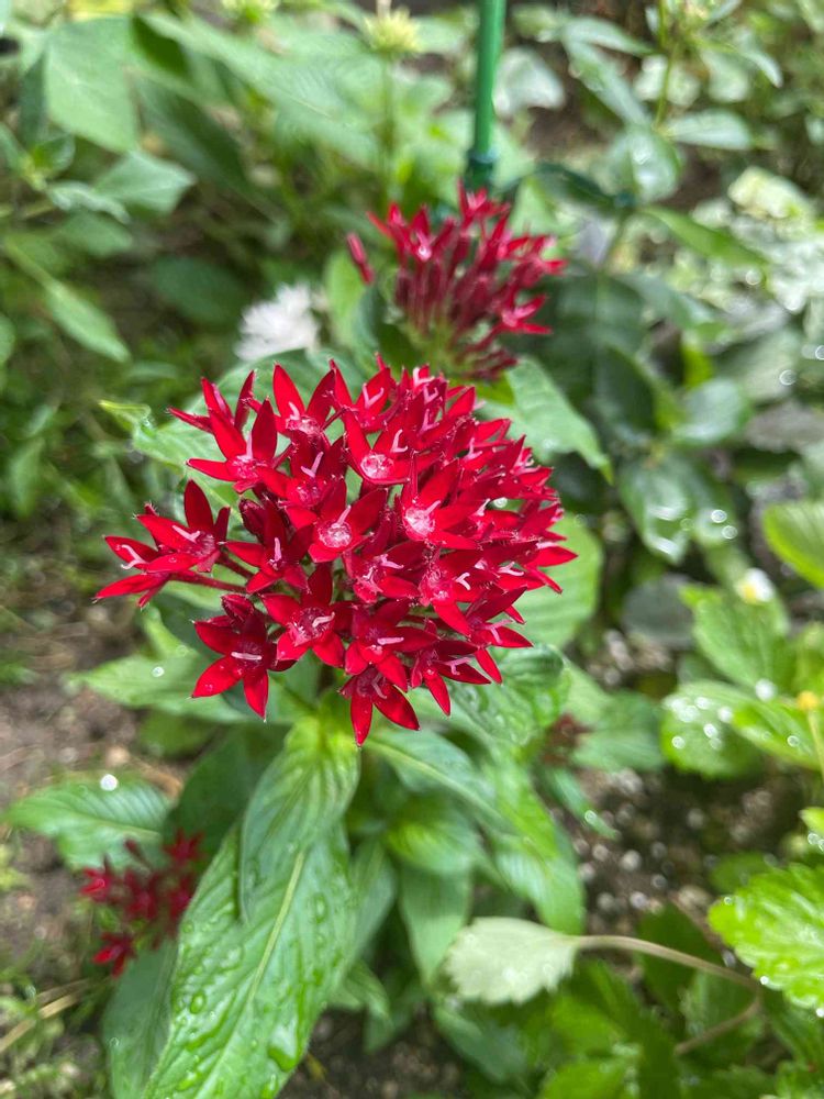 白、ピンクのペンタスの他にこの深い赤色のペンタスも花壇の仲間入り☺️💕