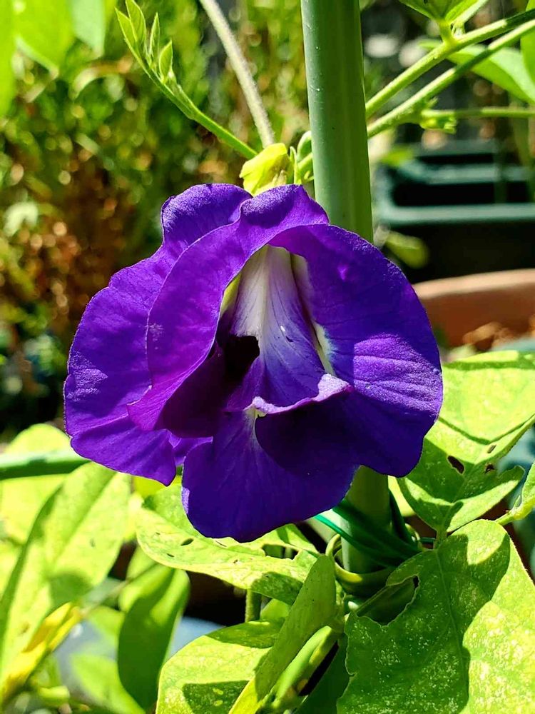 いい色~💕美容茶にしたり染め物にしたりアントシアニンがあるみたいです。まだつるが短いのでこれからどんどん延びて沢山咲いてくれたらなぁ~😄✌