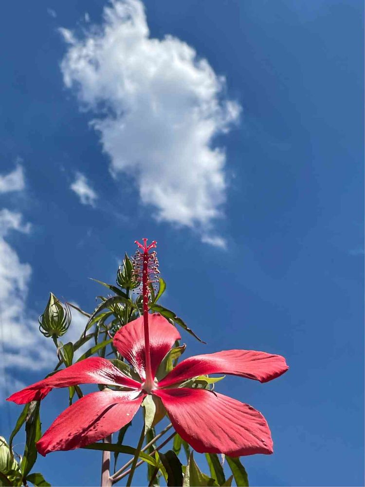 モミジアオイ、青い空に濃いピンクが映えてすごくきれい💕。
