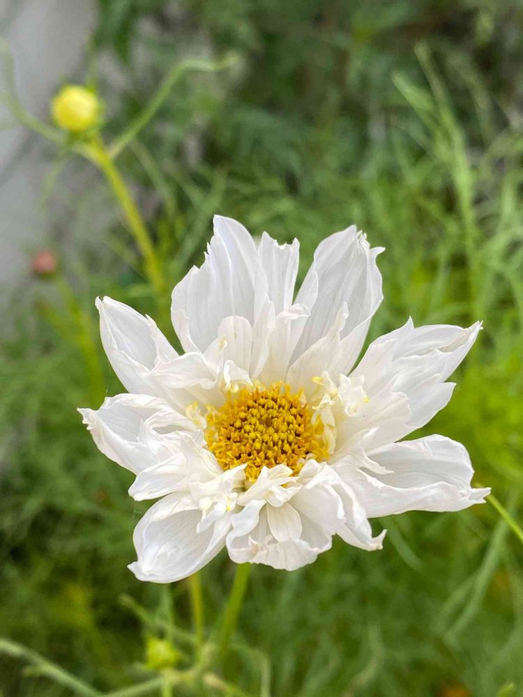 二番目に咲いたコスモスは八重咲きのような白いお花です💕