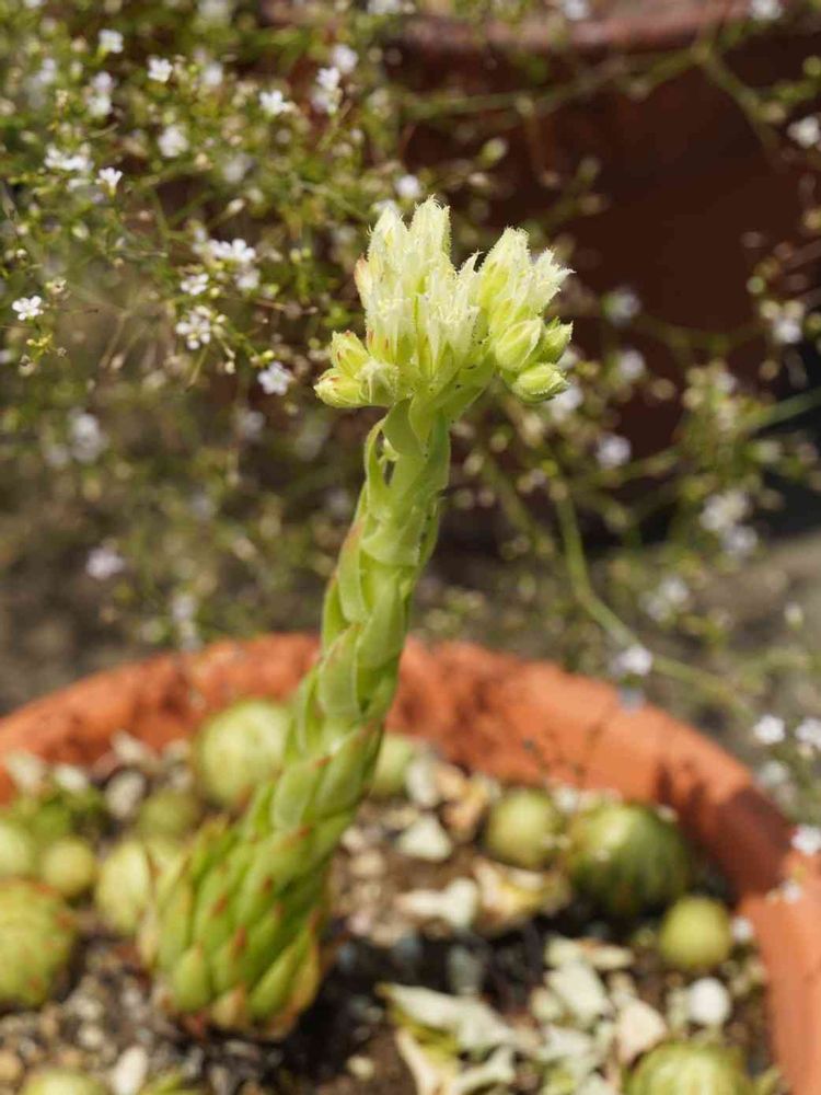 この子は咲いたので枯れてしまいますけど、子株達が足元で元気に育っていますよ~。
