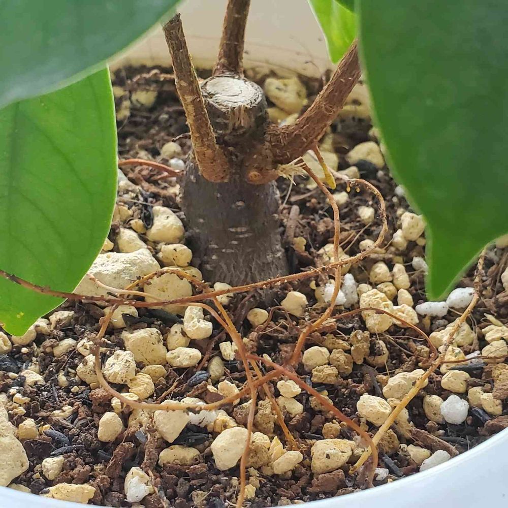 ガジュマルの根っこを太くしたくて埋めているんですが、気根があちこちから出て、伸びて、暴れてます🔥