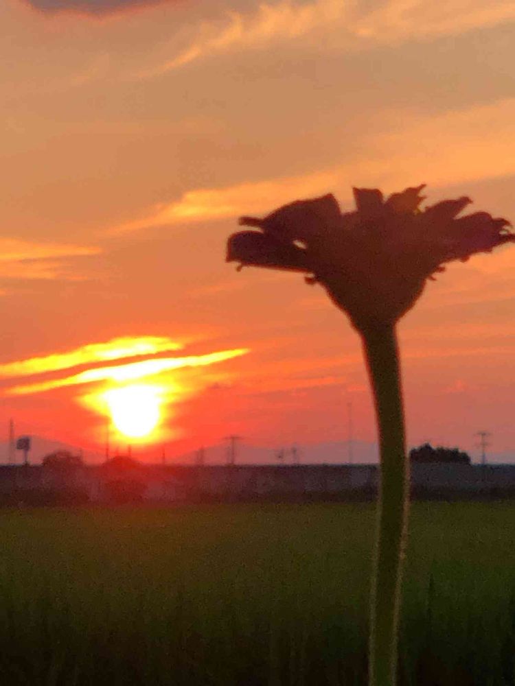 このジニア🌸🌸真っ赤何ですが💦色を取るか、夕陽🌇を取るか🤔迷った末 夕陽で✌️