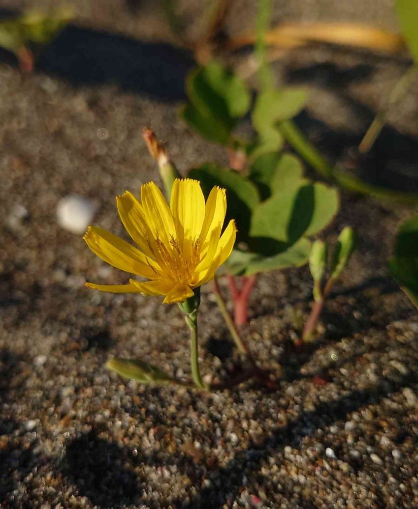 ハマニガナ、海岸の砂地に生息しています。地下茎を伸ばして増えますが、砂を被っても直ぐ地下茎を伸ばして葉を地上に出すそうです😊写真のように砂の中から葉や花がポンと出ている様子はよく見られる光景かもしれません😊