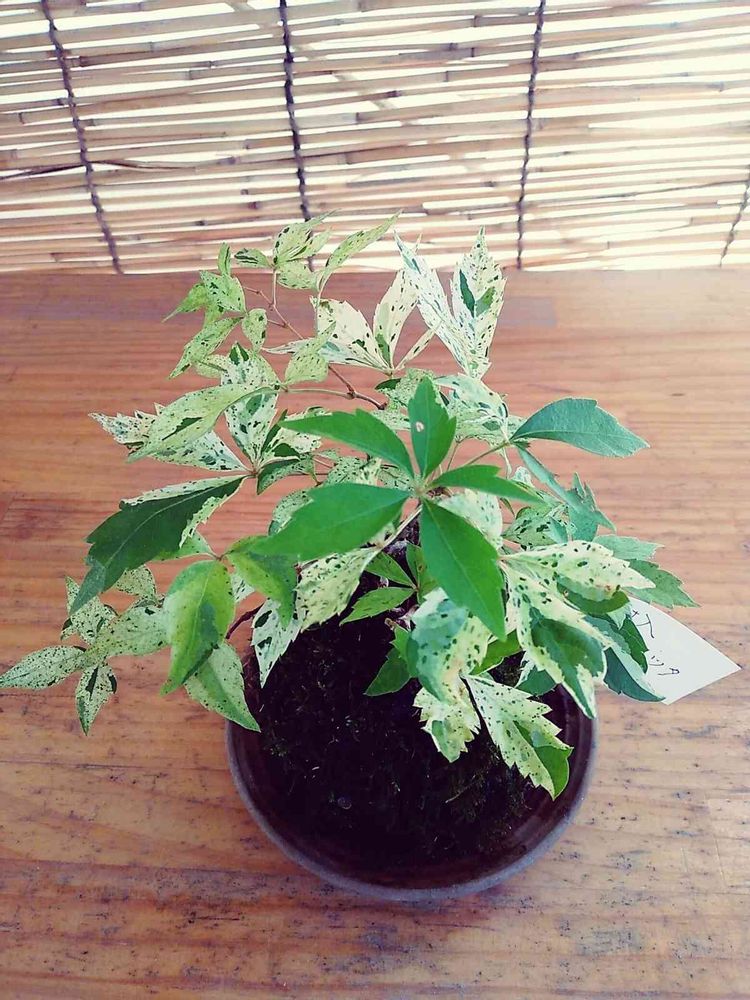 斑入りアメリカヅタを苔玉にしました。風通しのいい明るい日陰に置いてます。