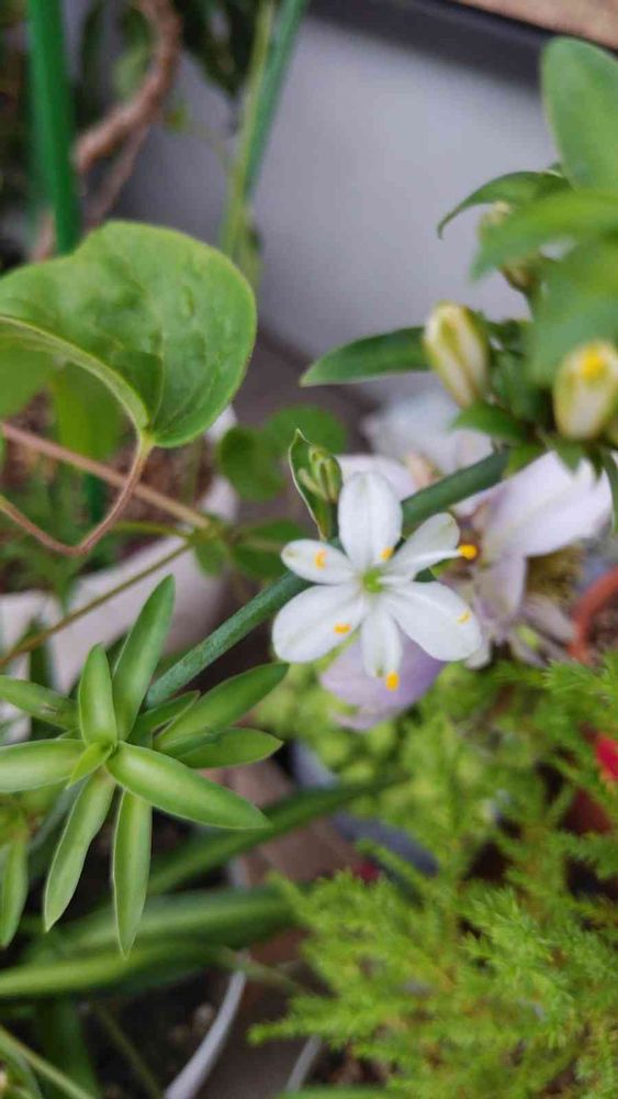 オリヅルランにも、小さなお花さんが咲いてました。暑いので毎日、夕方遅くにお水をたっぷりあげていたら、初めて咲いてくれました!