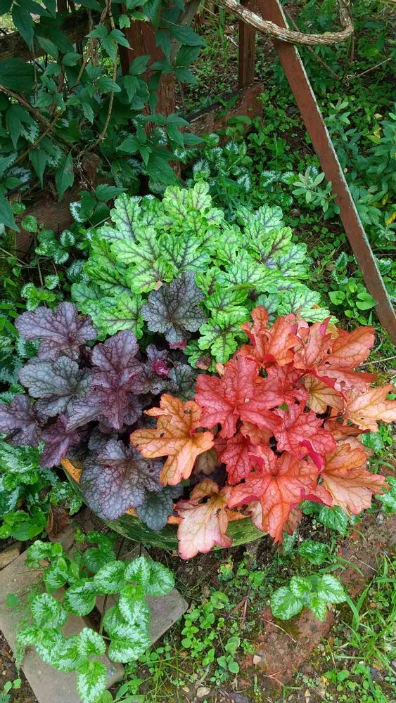 マルナムさんのお陰で、うちにもヒューケラ3色コラボ寄せ植えが出来ました💕