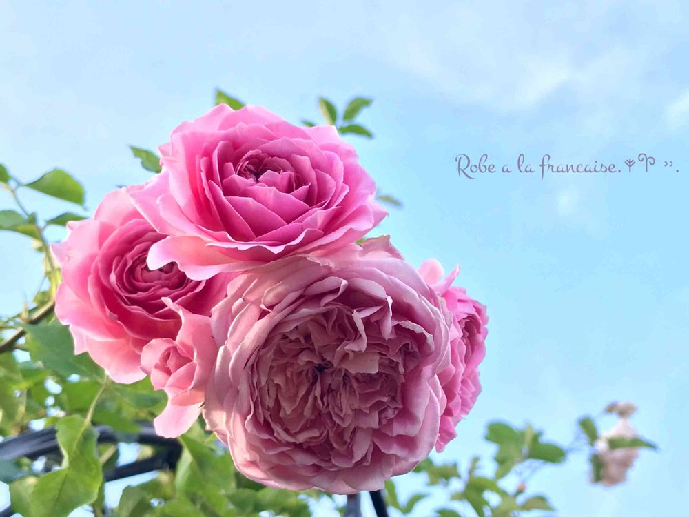アーチのローブアラフランセーズさん、キレイに房咲きしてくれたわぁ💗 この時期の方が花は傷まず咲いてくれるね😅💦 逆光になってしまったので花がよく見えるように露出を調整したらなんかホンモノじゃないみたいな感じになっちゃった😂😂💨