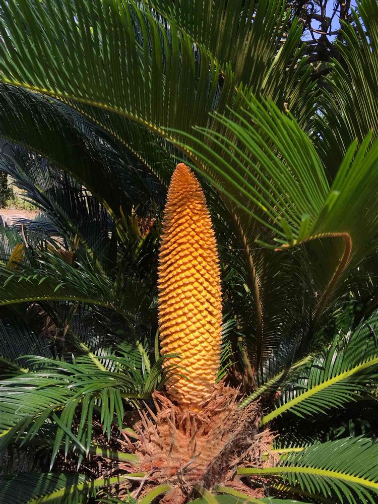 ここら辺では普通に各家にソテツの木があるので、道沿いにあり、数え切れない位この木の前を今まで通って来たのに、今日初めて雄花が目に入り、ソテツそのものの存在に気付いた私😅 ドンダケー〜
