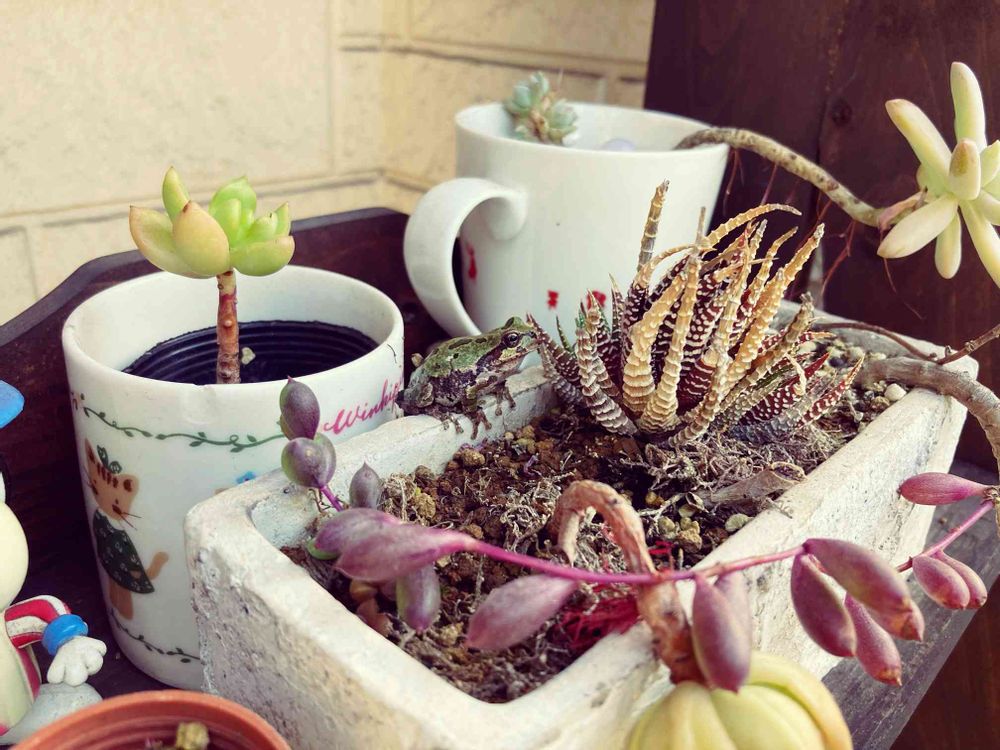 多肉にカエルが〜🐸