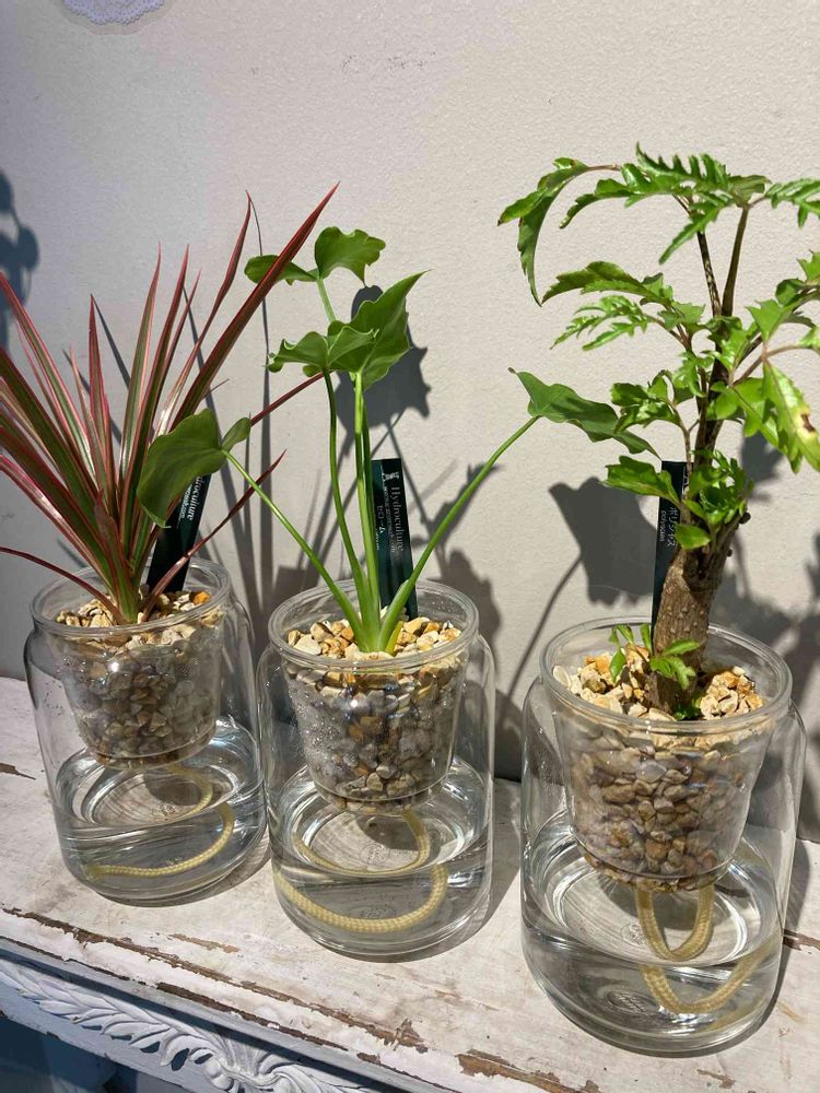 ハイドロボールと呼ばれる人工の土を利用して植物を育てる方法です。