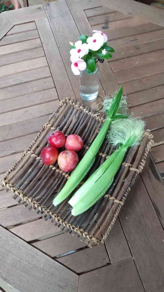 畑のトウモロコシのヤングコーン3本、そしてプラムも4つ💕