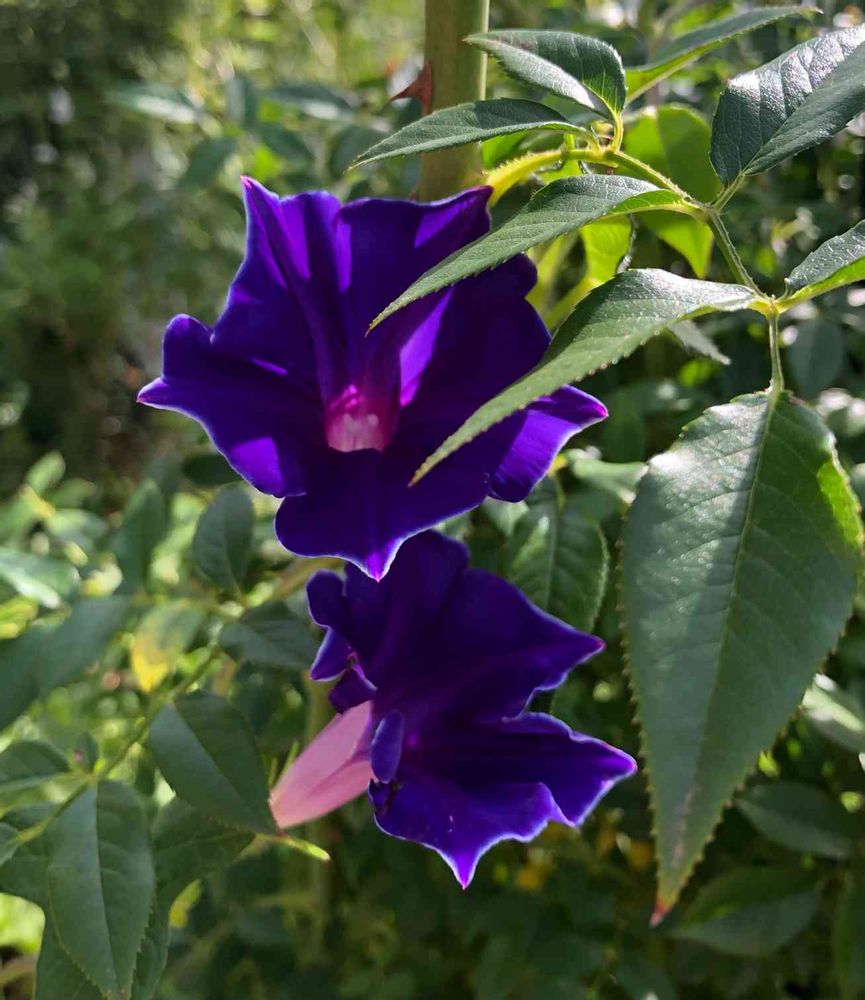 今年初めて、種から育てて、濃ゆい紫の桔梗咲きアサガオが庭に映えて嬉しいです😊