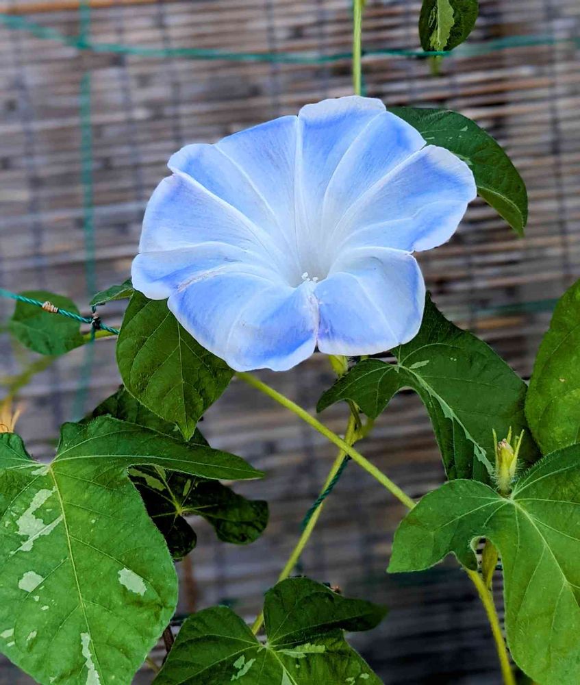 「水戸あおい」今年初めて育てたんですが、大輪なのに何だか優しい感じの朝顔ですよ💙