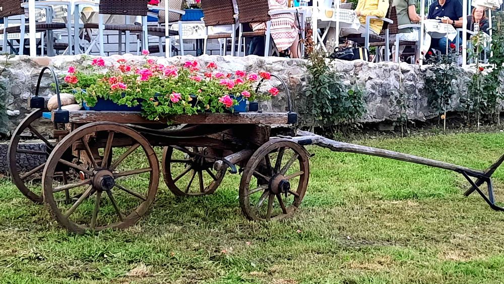 荷車いっぱいの花は、ゼラニウムでしょうか❓🤔