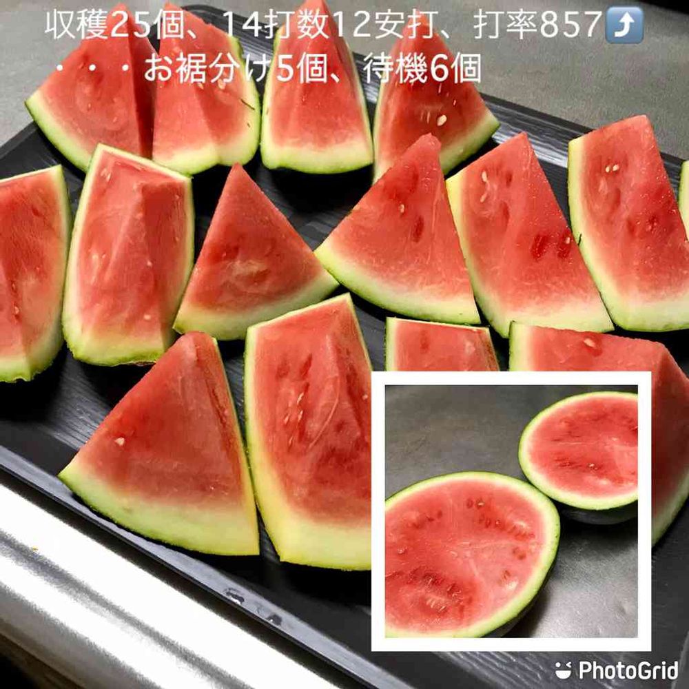 風呂♨️上がりに、今日採りの1個しか結実しなかったブラックジャック🍉を「パカっ!」とな、きれいな種なしで合格💮😊。上の子宅でパカっ!としたアクシア🍉2個も🙆♂️🙆♂️だったので、打率上昇⤴️。