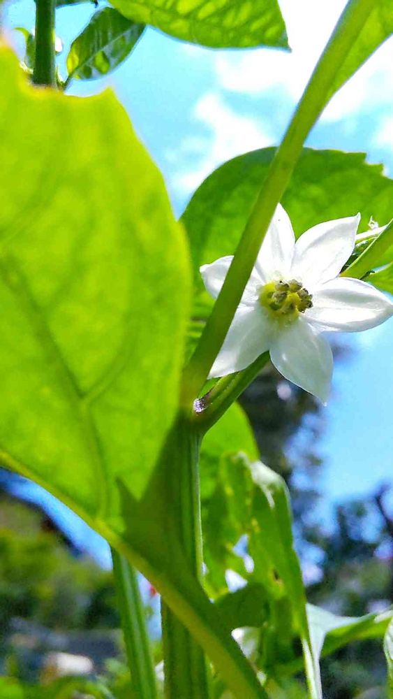 ピーマンの一番花が咲きました。種からの栽培は初チャレンジです。