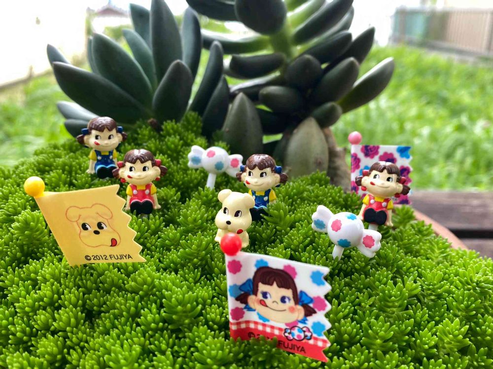 清々しい緑の丘にペコちゃん達がピクニックに来てるみたいで、外の暑さを忘れるpicだわ💚