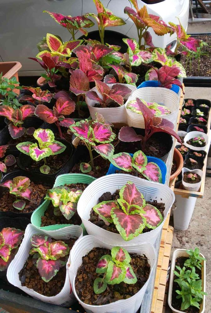 中山間地花壇の為の種からコリウス、一回目は全滅(二株のみは生き残り😅)二度目の種まきから!花植えはもう皆で済ませているので涼しい明日朝にでも