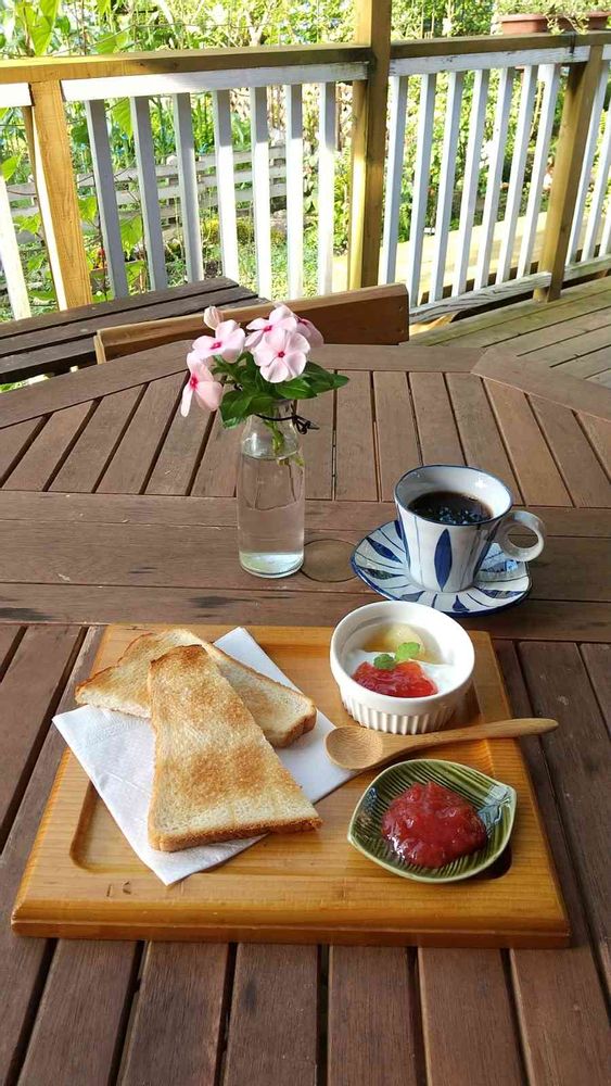 今日は久しぶりのお休みでしたし、朝はテラスもまだ涼しいので、気持ち良いです🥰🎵