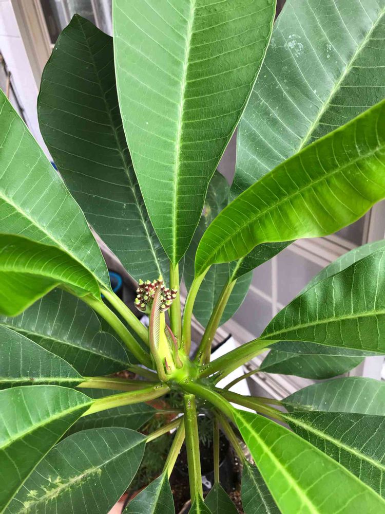 今年2年目でプルメリアの花が咲きそうです。今年は大きめの鉢に植え替えし よく日があたる場所に移動したのもありグングン成長してくれました。花が咲くのが楽しみです。