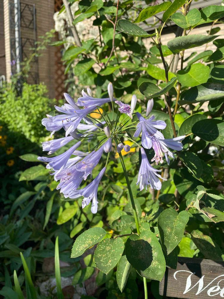 今日の花はアガパンサスですね。うちの庭に咲き遅れたアガパンサスが今満開に咲いています。