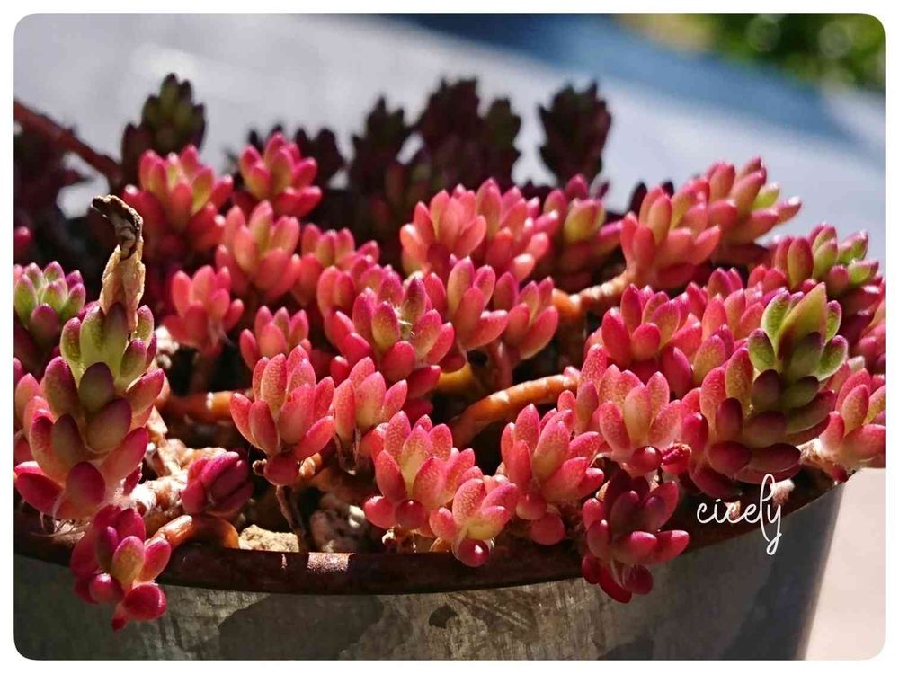 普通はこの時期は緑色なんです🌿でもこの鉢はずっとベランダ放置の雨ざらしで、土の栄養も無く根詰まりしてるので赤くなっています🍁ちょっと可哀想だけど、綺麗だから頑張ってって感じです🤣