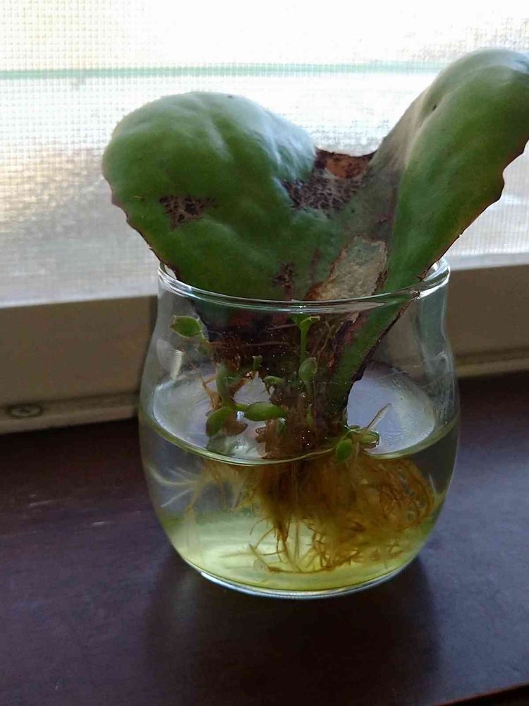 不注意でちぎれた葉っぱを水耕栽培。