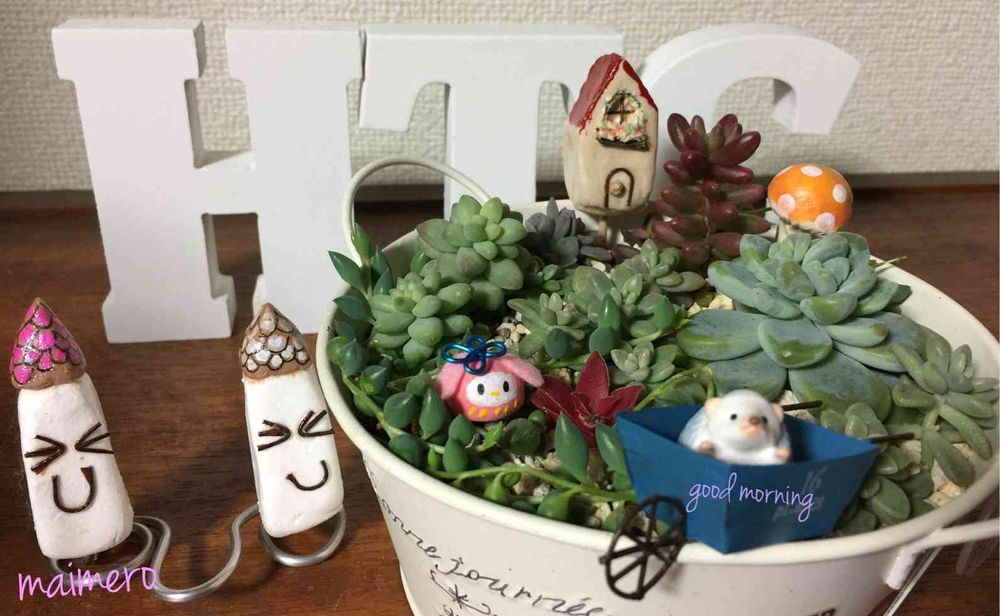 寄せ植え✨可愛いね~⤴⤴❤(´ω`*)マイメロダルマちゃん💕💕も、ちょこんと…(*≧▽≦)👍👍👍