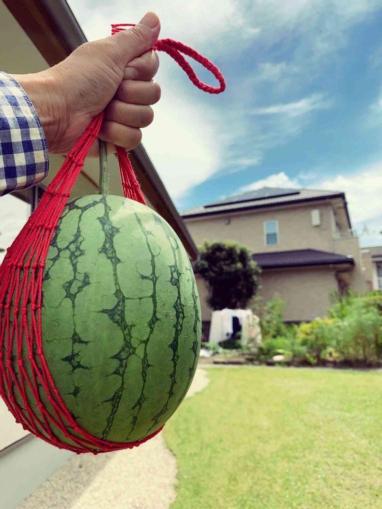 広い庭,小玉スイカ 黄色,スイカの空中栽培の投稿画像
