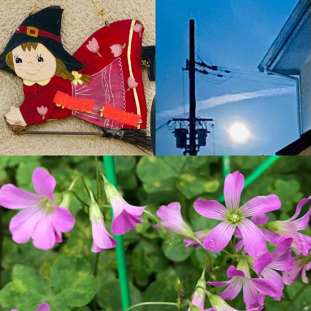 さん、可愛い魔女さん☺️🌕️と飛行機雲のコラボレアね🤗