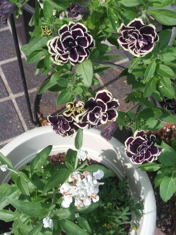 ペチュニアとホワイトサルビア咲いています。😃💕✨