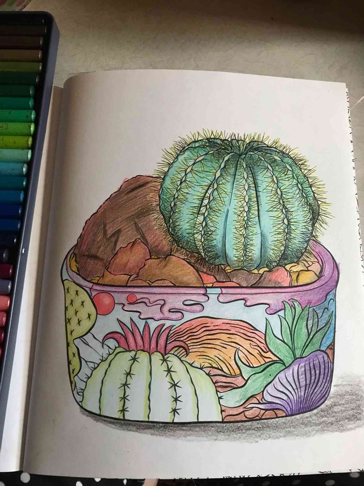 メルカリで買った塗り絵のサボテン塗ってみた(・ω・)ノシ