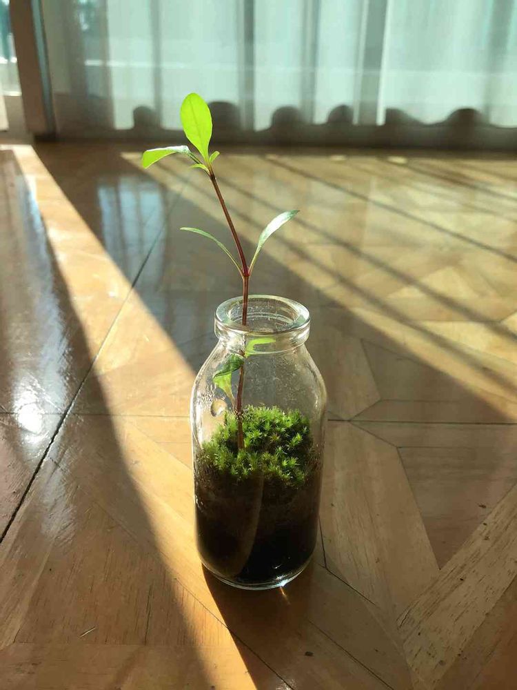 コメントありがとうございます!☺️この瓶には、下から順に、炭を細かく砕いたもの、パーライト、乾燥水苔を水で戻したもの、を入れてあります。その上に生きているスナゴケ(だったはず…)を置いてあります。そして、スナゴケの間に水槽から取ってきた水草の新芽を植えたところ、写真のようにビヨーンと伸びてきたのです〜