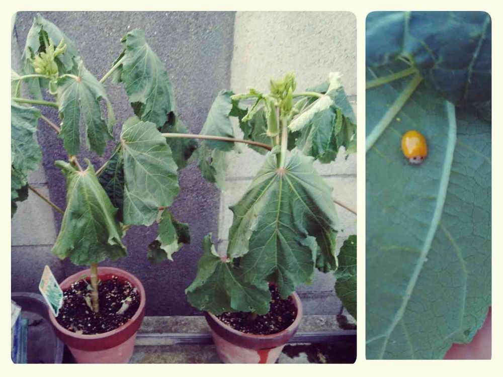 そんな折、葉の裏にキイロテントウを発見。テントウ虫は園芸の心強い味方ですぞ。ぜひ良好な関係を築きたい。調べたところ、キイロテントウはうどん粉病菌などの菌類の食べるてんとう虫のようですね。なるほど、よろしく頼むよ。