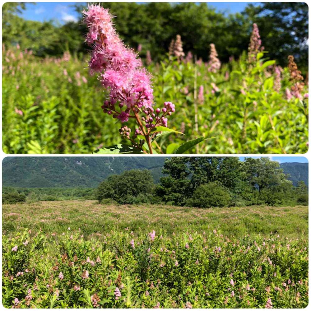 ホザキシモツケは湿原にこのように群生するんですね。見事てしようね。