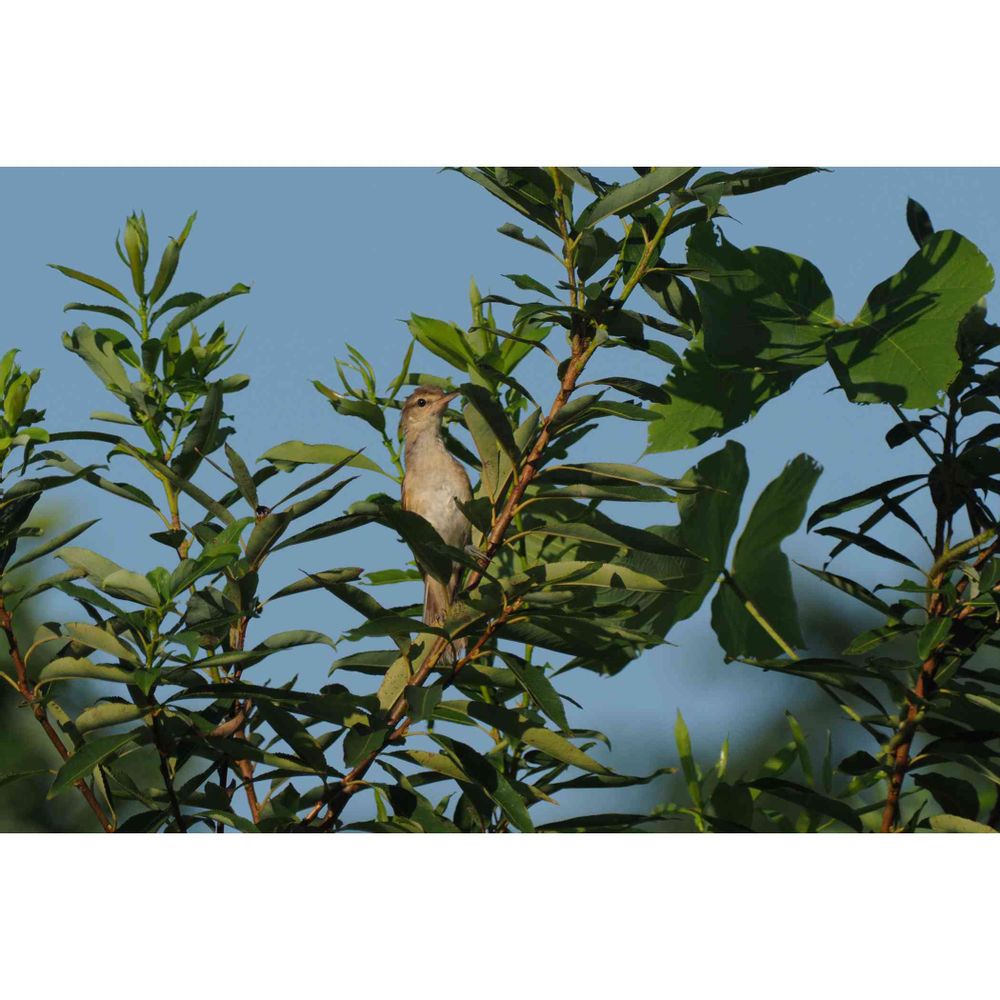 いるはずだと思って探しなら歩いていると、葦の中では無く傍の木に何やら鳥さんが止まっています。