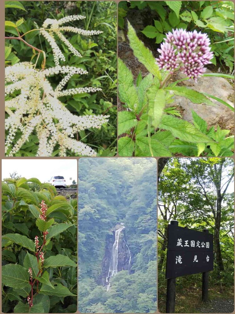 エコーライン途中から見れる滝と、道路側には💜フジバカマ、ヤマブキショウマ、ベニバナイタドリが🌿🌿🌿ワサワサと、迎えてくれました•*¨*•.¸¸♬︎