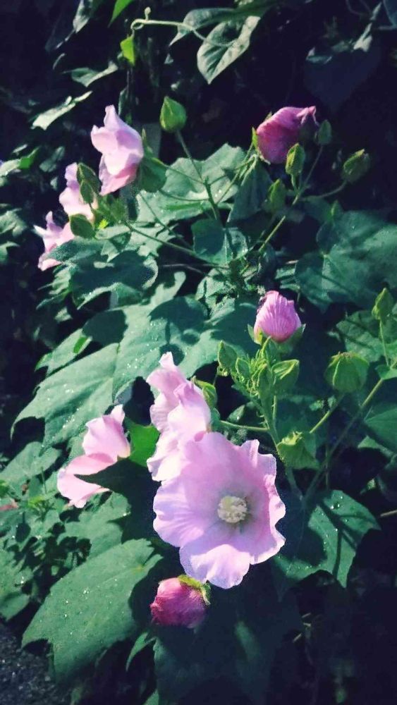 線路沿いの芙蓉の花は薄暗くても美しいです(⑅•ᴗ•⑅)◜..°♡