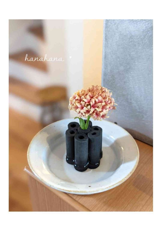 シンプルな炭の花立て、器やお花によって色んな楽しみ方ができるのが素敵ですね♫アレンジ上手なhanahanaさんにぴったり❣️折れてしまったお花もここでステキに活かされて幸せ❤️